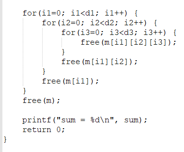 Problem 1. Write a C programm which creates a 4 dimensional matrix with dimension read from keyboard.Populate the matrix with 1 everywhere then calculate the sum of all numbers. Deallocate all allocated memory at the end. Use valgrind to verify memory allocated is freed.