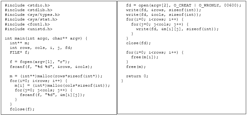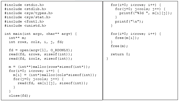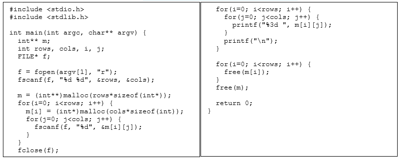 Problem 2. a. Consider a text file storing a matrix as follows: the numbers of rows and columns are on the first line separated by space, and on the subsequent lines, are the elements of the matrix separated by space.