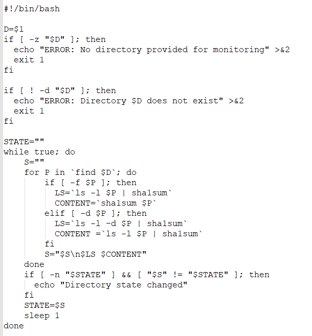 7. Pb from seminary: Write a script that monitors the state of a directory and prints a notification when something changed: