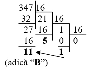 Astfel, luând resturile în ordine inversă obţinem 15B(H).347(D) = 15B(H)