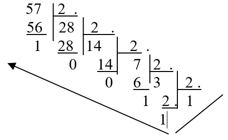 - Să se convertească 57 din baza 10 în baza 2(B).