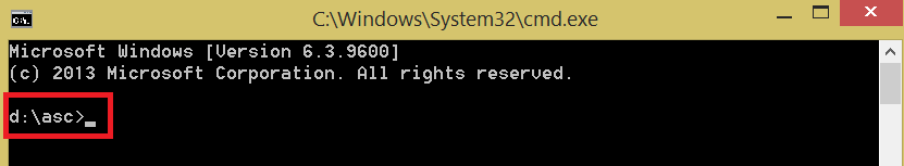 - dacă nu se vrea utilizarea programului Total Commander, se lansează cmd.exe și cu urmatoarea secvență de comenzi se poate naviga în directorul asc