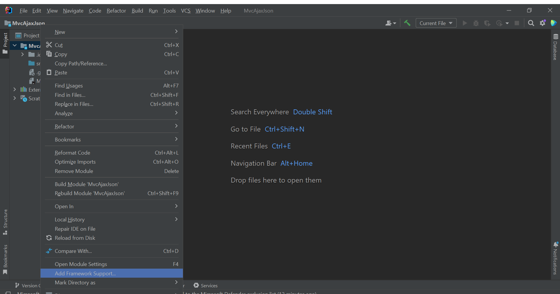 Right click on the project name in Project Explorer (on the left panel) and choose "Add framework support":